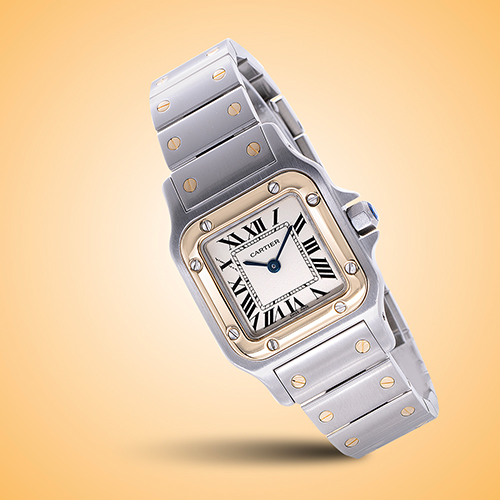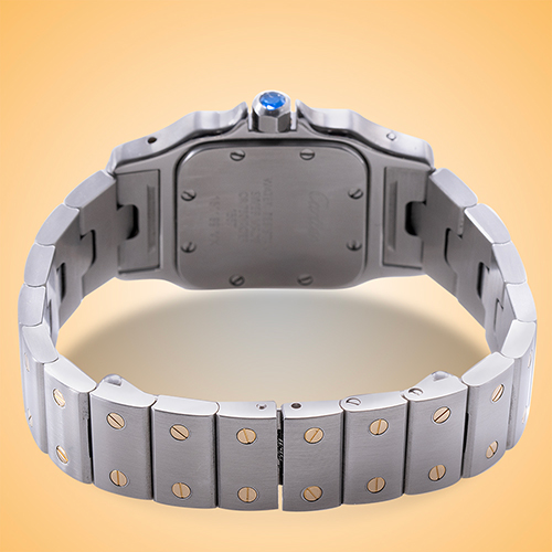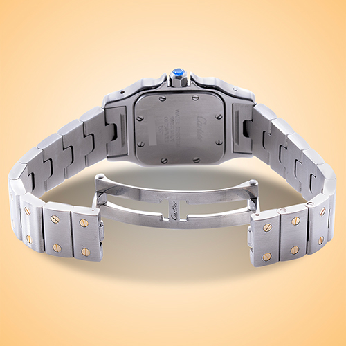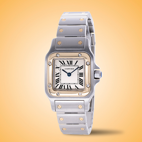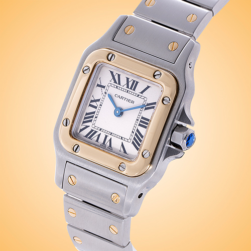 Standout features: Iconic model with engaging combination of stainless steel and yellow gold; beautiful smooth 18K yellow gold bezel insert is attached to the case by steel screws and defines traditional Santos Galbee style.