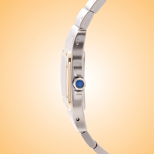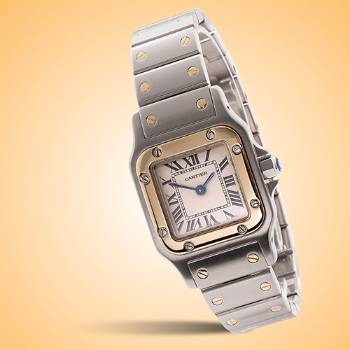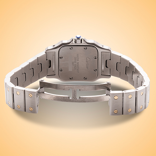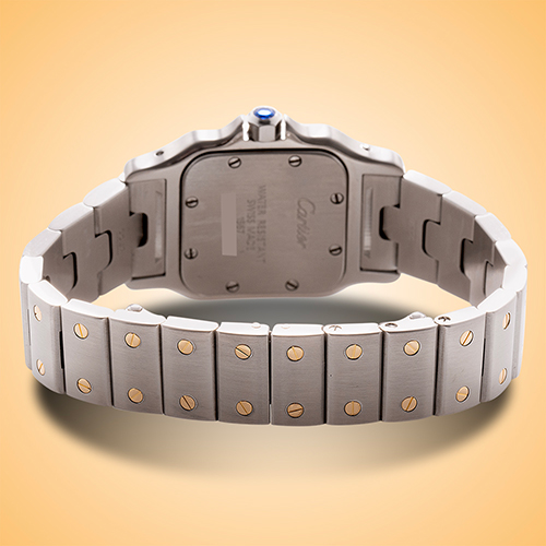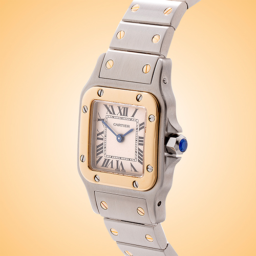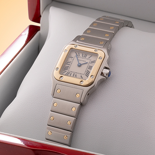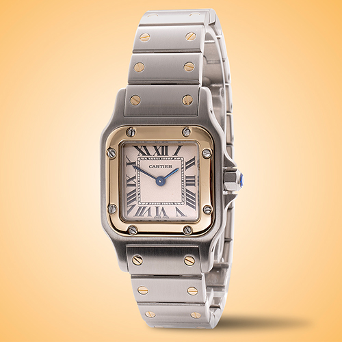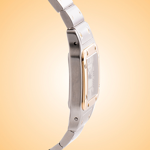 steel and yellow gold elements Santos Galbee by Cartier, and it can
