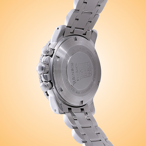 pushers, and a solid case back with "Rainbow" engraving.