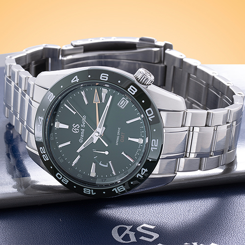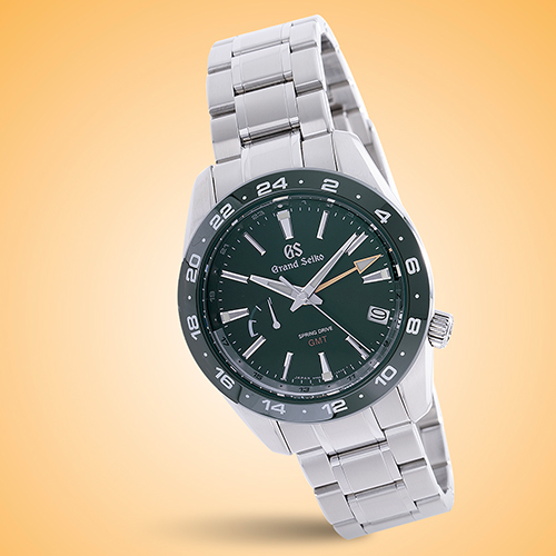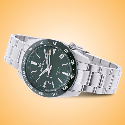A charming, inviting combination of green and yellow stylings invite you to add this Grand Seiko GMT to your collection.