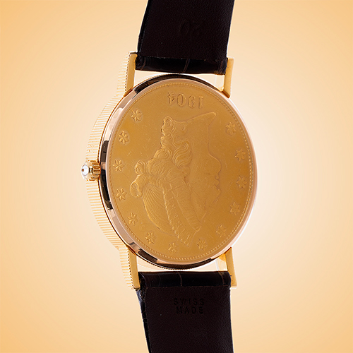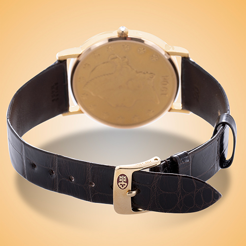 dial of this miraculous watch is a twenty-dollar gold coin featuring