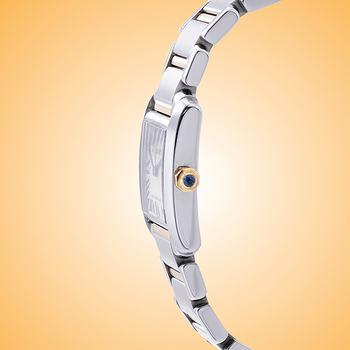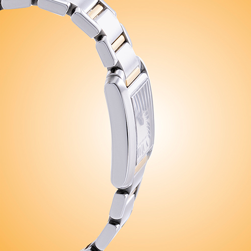 - Band: Stainless steel with 18K yellow gold links (will fit up to 5.75 inches wrist)