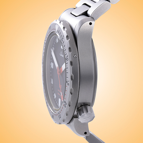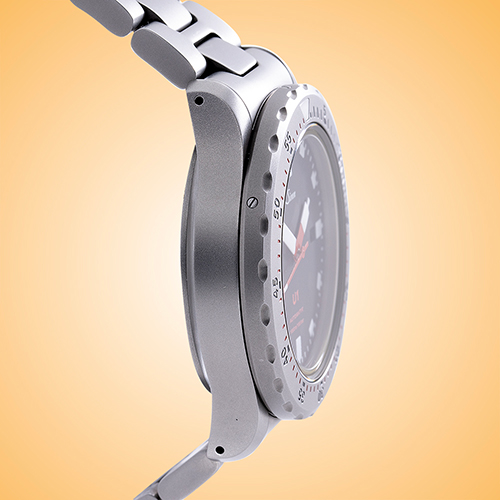 Standout feature(s): Magnificent 1000 m / 100 atm water resistance; fabulously strong Submarine Steel case and winding crown; bold graphic dial stylings; “captive bezel” construction; winding crown placed at 4 for comfort.