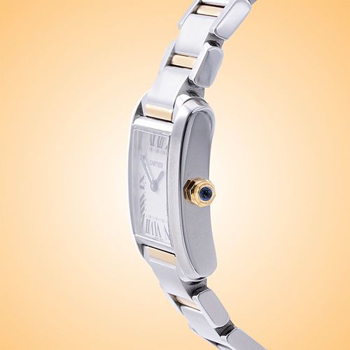The gorgeous Tank Francaise line emerged in 1996 with some subtle updates to classic Cartier Tank stylings. As such, we believe you will enjoy the dial that is a bit more square than rectangular.