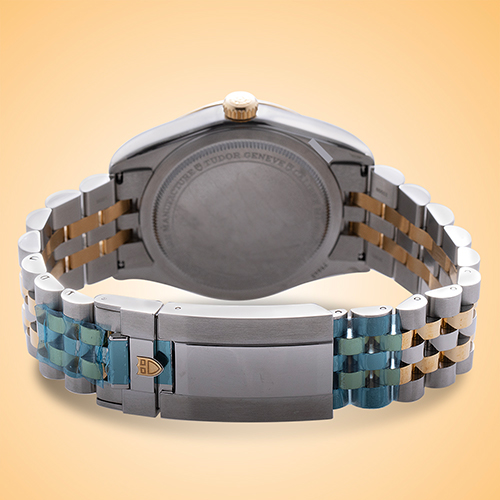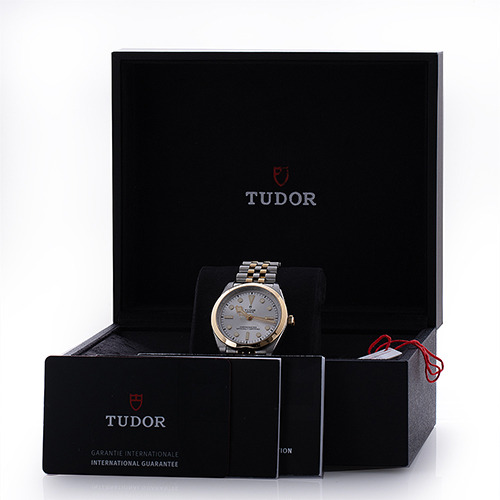 sports a Tudor rose in relief. The visually dynamic stainless steel and